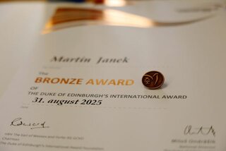 Dňa 17. 09. 2025 prevzali v Žiline bronzové a strieborné ocenenia naši žiaci Lukáš Bagin, Martin Janek a absolvent Dominik Hollý, ktorí úspešne ukončili jednotlivé stupne programu DofE. Rovnako sme ocenenie priniesli aj žiakovi Tobiasovi Nemcovi, ktorý sa slávnostného odovzdávania nezúčastnil.